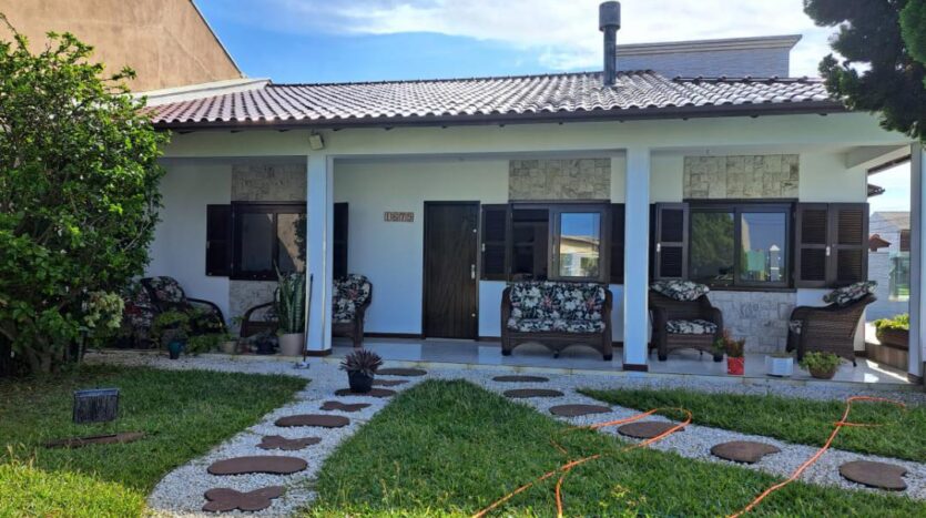 Casa de 2 dormitório, 1 suíte,  1 banheiro social, sala e cozinha integrada amplas, garagem para 2 vagas com churrasqueira. Área externa conta com piscina, jardim planejado, pátio fechado.
